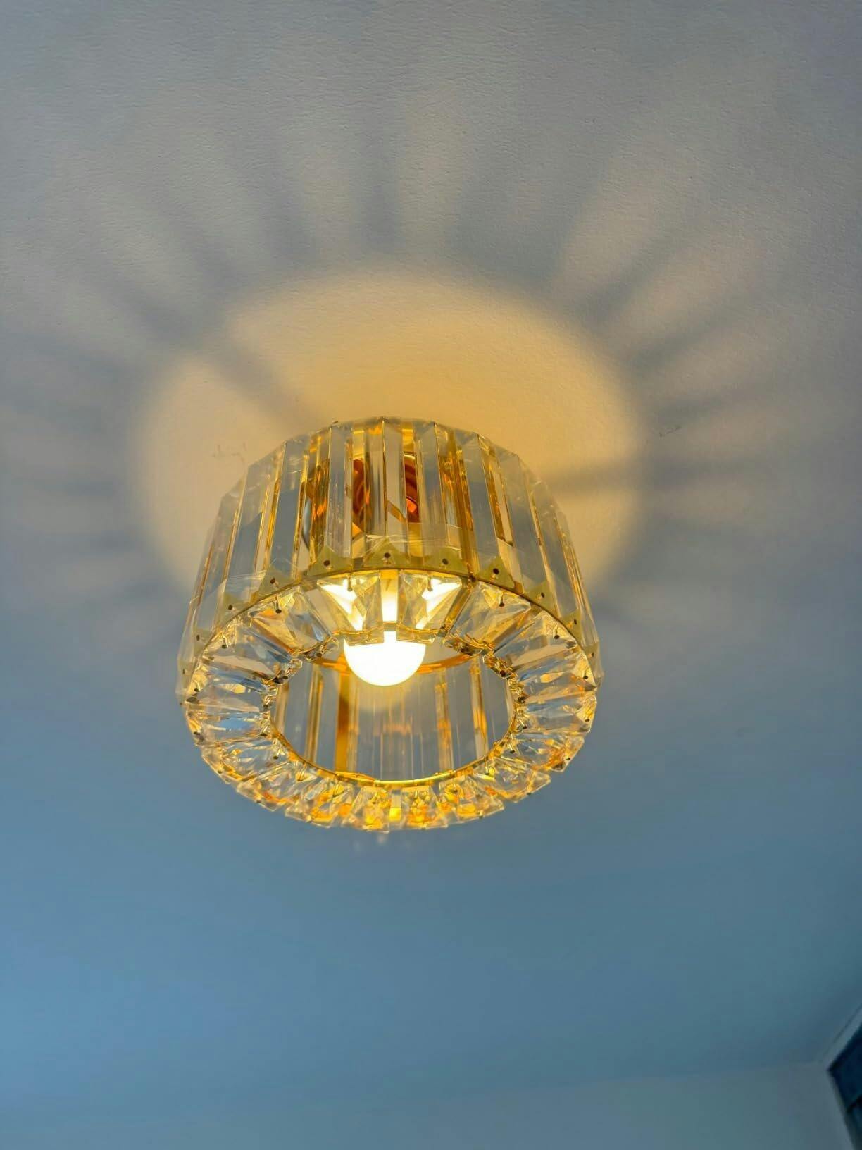 A sleek ceiling light blending geometric crystal accents with contemporary design, creating refined ambient lighting for entryways, corridors, and transitional spaces. Combines timeless elegance with modern functionality.